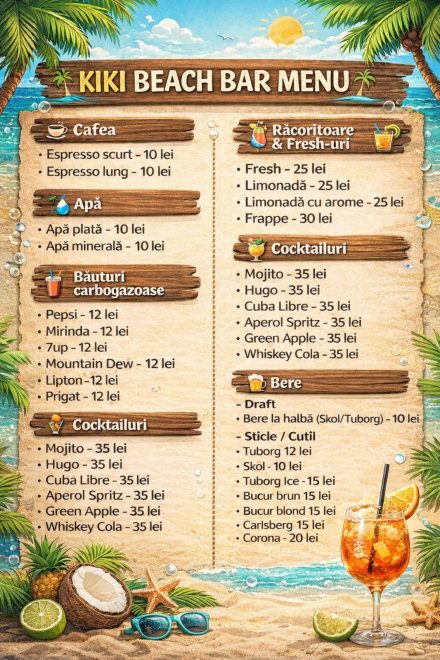 Meniu Kiki Beach Bar , Sucuri, Bere , Cafea , Frape , Fresh , Limonada